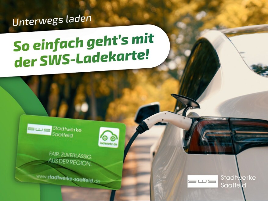 Dienstag 14.10.2025Ob beim Einkaufen, auf dem Weg zur Arbeit oder beim Besuch von Freunden und Familie – mit der SWS-Ladekarte kannst du dein E-Auto ganz unkompliziert an unseren öffentlichen Ladesäulen in Saalfeld laden.